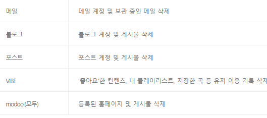 회원정보 및 메일, 블로그, 주소록 등 개인형 서비스 이용기록은 모두 삭제되며, 삭제된 데이터는 복구되지 않습니다. 삭제되는 내용을 확인하시고 필요한 데이터는 미리 백업을 해주세요.