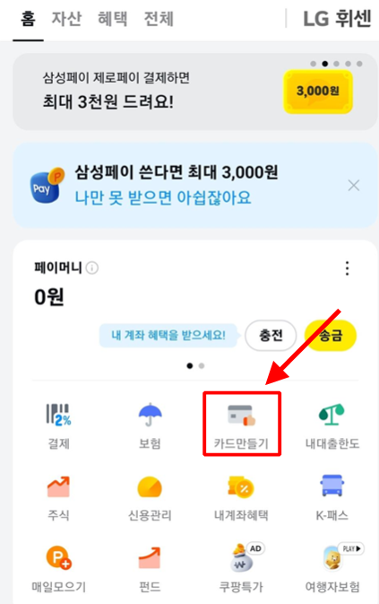 2) 다음으로 아래와 같이 카드 만들기 아이콘을 클릭해 줍니다.