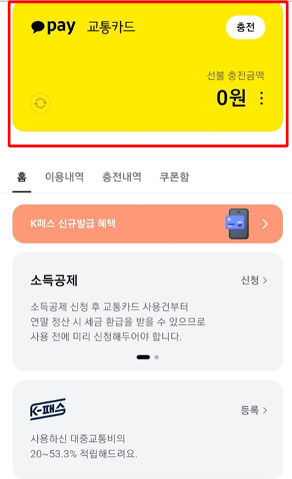발급받은 카드에 따라 환급방식이 조금 다른데, 체크카드는 연결된 계좌로 적립액을 환불받을 수 있고, 신용카드는 적립액만큼 결제금액에서 자동 차감됩니다. 선불형충전신 모바일카드는 앱을 통해서 적립액만큼 재충전 가능합니다.