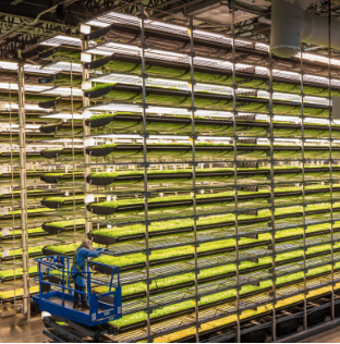 수직농장이란 영어로 Vertical Farming이라고 하는데요. 수직농장은 실내 환경에서 햇빛 대신 LED 조명으로, 흙 대신 물과 영양소로 식물을 재배하는 시스템을 적용합니다. 특히 여러 개의 선반을 수직으로 층층이 쌓아 올려 식물을 재배하는 방식을 사용하기에 '수직'이라는 용어를 사용하게 되었습니다.