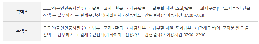 1. 홈택스 또는 손택스 이용 전자 납부