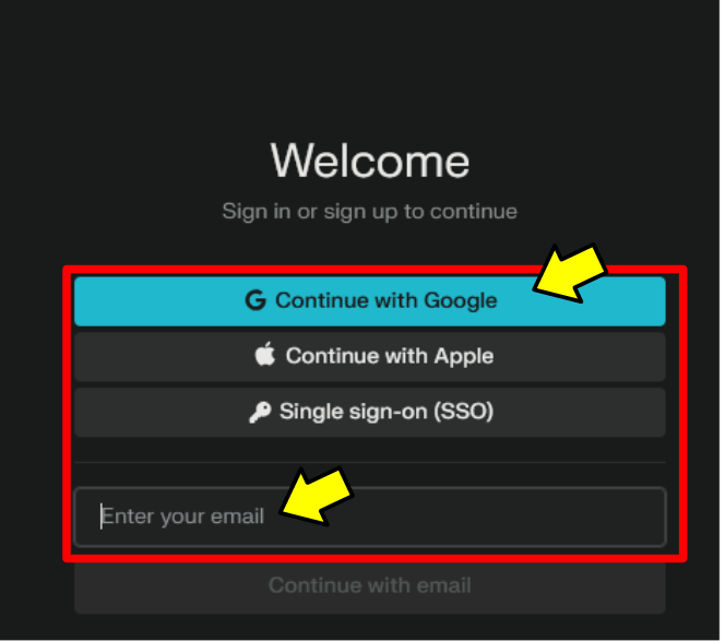 다음으로 가입할 계정을 선택해줍니다. 구글이나 애플로도 가능하고 일반메일로도 가입가능합니다. 저는 일반메일을 쓰기 위해 직접 아래에 메일주소를 입력했습니다.
