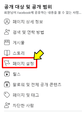 두 번째로는 [공개 대상 및 공개 범위] 탭에서 [페이지 설정] 을 클릭해줍니다.