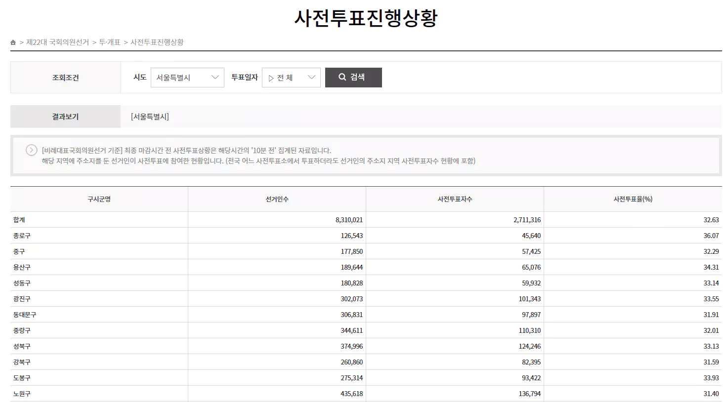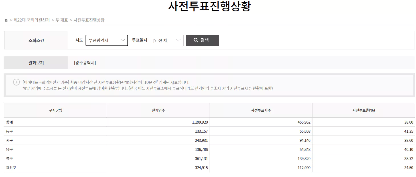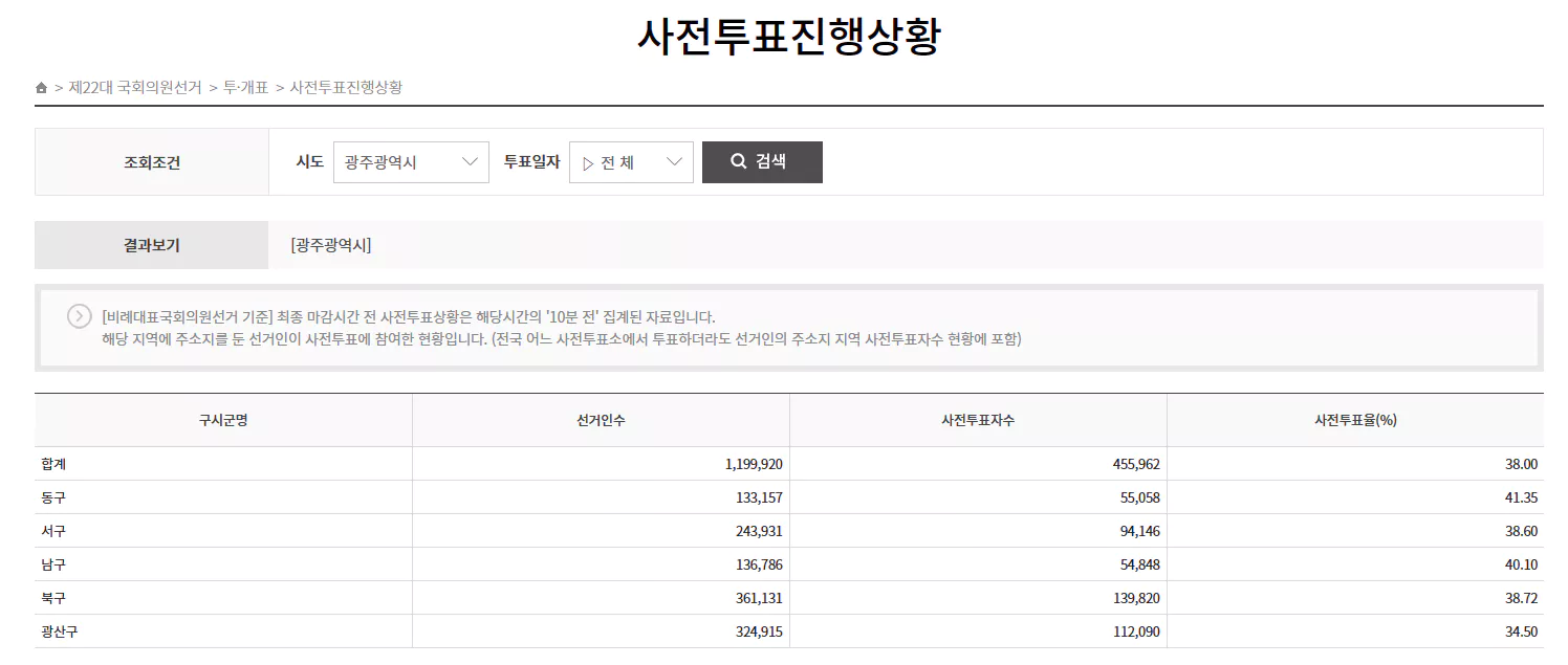 사전투표자수 조회 방법